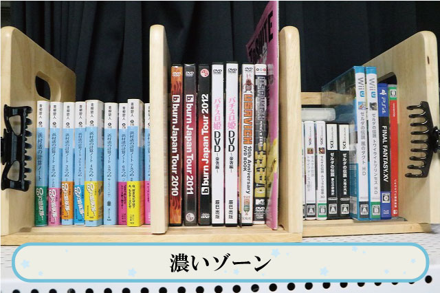 本・DVD・ゲームソフトが綺麗に整頓されてていい感じ。