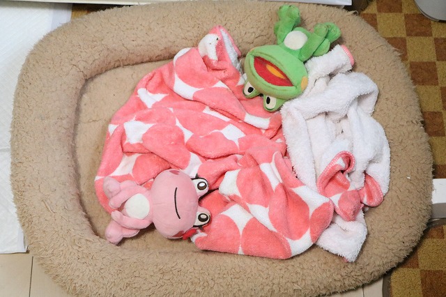 寝起き直後を狙って行ったから、まだジャっかんの温もりが。