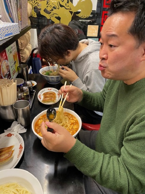 先日、収録終わりに中武先輩と赤坂テンパイ、私の三人で浅草の町中華に行った際、先輩は猫舌のくせにアッツアツの麻婆豆腐ラーメンを注文しました。こうなると先輩の居残りは不可避、最悪、外でタバコ1カートン吸い尽くす可能性もあるなと思っていたら、案の定、先輩が食べ終わったのは私の二十分後。もう感覚が麻痺しているのか、一周回ってそう思うようになったのか。あり得ない遅さに感心頻りといった感じですが、先輩のどんぶりをチラリ見遣ったらまさかまさかの麻婆豆腐全残し。あり得ないと言う意味ではこちらのほうが遥かに上でした。
