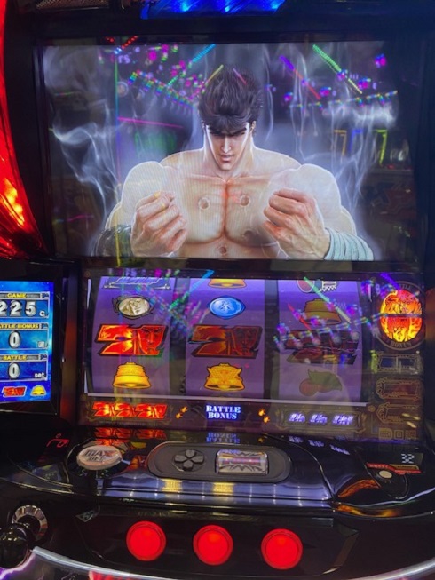 最近、『北斗の拳』を頻繁に打っています。のっけからこう書くと、おいおいネットで調べりゃすぐ分かる情報を偉そうに解説するつもりか。こう思われる方もいらっしゃるかも知れませんが、皆様、一体私を誰だとお思いか。スロライターを名乗ってはいるものの、その実、スロにまつわることを書くのは年に一度ないし二度。そんな私が状態移行抽選について語ったり、設定推測について解説したりというのはまずもってあり得ない、なんでも言うことを聞く後輩を模範囚と呼ぶくらいあり得ない話だというか、逆に私の隣に座って教えて欲しいくらいです。模範囚のようにハイハイ言うこと聞きますので。