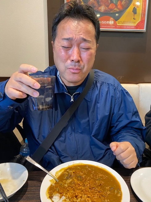 ※カレー食ってもジム行ってきたのかと思うくらい先輩は汗をかきます。