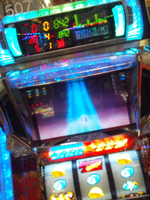 天井まで行く台は悪い台ですからね。抜いた鼻毛をソファに捨てる感覚でそのゴミ台を捨て、心機一転、持ちコインで朝イチ台に移動しました。リールの動きにリセットの挙動が見られたのでちょっと粘ってみたんですが、案の定、こちらもいまひとつ…。ただ、ご承知のように設定変更後は50%の割合で562G天井が選ばれますからね。医学的根拠も化学的根拠もありませんが、大丈夫だろう、ニブイチはハズさないだろうと、のんびり構えていたら、こうなりました。
