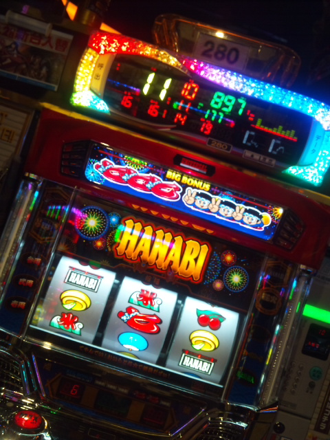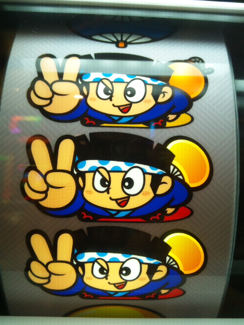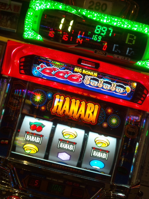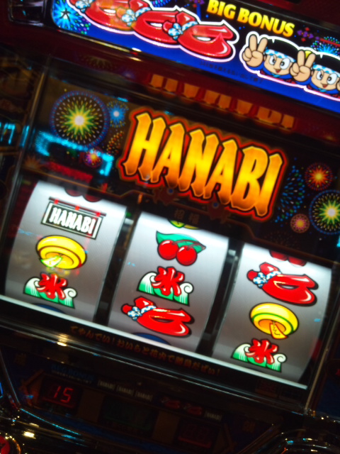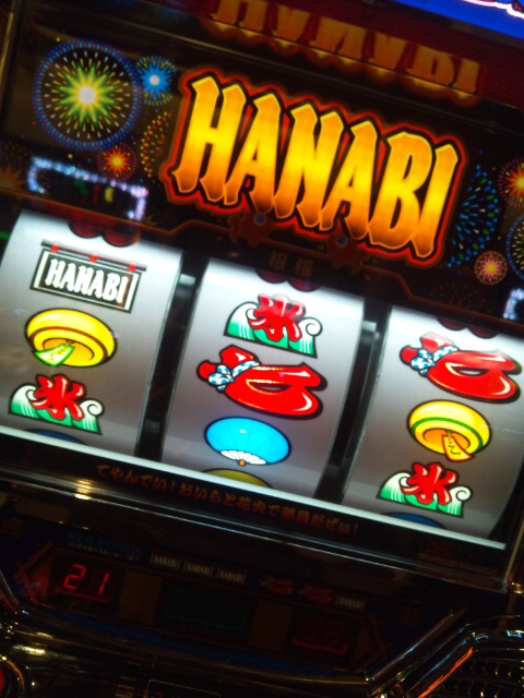 リーチ目は徐々に思い出しました。ここには掲載していませんが、左リールの上段に暖簾停止、右リールに「氷、リプ、チェ」停止の氷テンパイハズレ。次ゲームのレバーを叩いた直後、右リールにドンボーイが見えてボーナスを察知したとき完璧だと思いました。もうハナビのすべてを思い出した、ドンボーイのケツの穴のシワの数まで思い出したと確信しました。