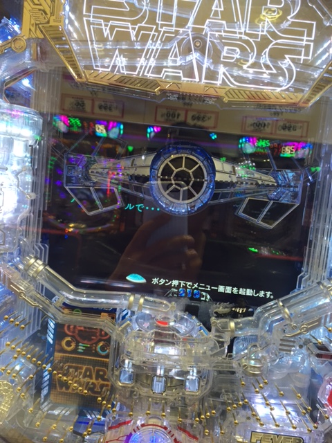 苦手なパチスロを諦め、少し苦手なパチンコで取り返してやろうと、いつものスターウォーズに座ったら3回転で通常4R当り。隣の歯抜けババアと抱き合い、ベラチューして喜びを分かち合いましたが、時短が10を切った途端、ババアは目も合わせてくれなくなりました。歯抜けババアはギブミーアップを歌っているし、タイファイター役モノはずっと出ている状態だし、そのお陰でパチンコの命とも言える液晶画面はまるで見えないしといったわけで、追加7本でギブ。苦手なパチスロに戻ることにしました。 ![]()