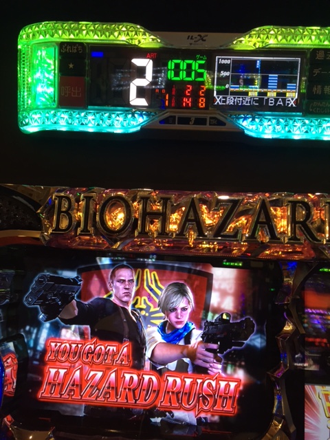 その不得手を仕事にしている俺もどうかしていると思うのですが、この日はバイオのリセットっぽい台を掴みまして俄然やる気だったのです。無論、リセットっぽいという表現からもお分かりの通り、リセットである確証はどこにもありません。強いて挙げるとするなら前日出ていなかった、朝イチにチャンス役を引いていないのに上位ステージ移行した、この二点ですが、結果的に100G手前で当ったのでこれはもうリセットでいいと思います。いや、誰がなんと言おうと俺はリセットと決め付けます。