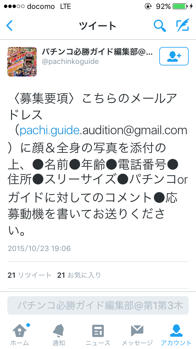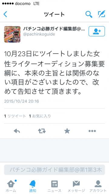 ポロッと出した本音を引っ込めるくらいなら最初から全部本音で書けばいいのに…。恐らくこの一連のツイートを見ていたガイドワークス出入りライターのほとんどはそう思ったんじゃないでしょうか。ちなみに。現在パチスロ必勝ガイドでも女性ライターを大募集しています。ただ、履歴書と作文は当然のことながら必須です。はい、おしまい。