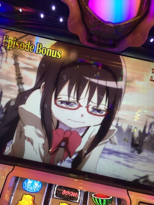 佐賀に到着したのは13時半。申し訳なさそうな顔をして店内に入り、従業員という従業員にやや薄くなった頭を下げ、とりあえず目に入ったまどマギ2のカド台に座り、プレイを開始したわけですが、無論、こういうときは地方でのみ適用される負け倍付けの法則はありません。如何なる理由があろうとも遅刻は遅刻、かもめはかもめですから、自らにペナルティを課す意味でも、ここは大きく負けなければならないし、天井まで連れて行かれて然るべきないのに、このバカタレ台ときたら僅か6千円でワルプルギスが確定するほむらのエピソードビッグなんぞを引きやがったのです。