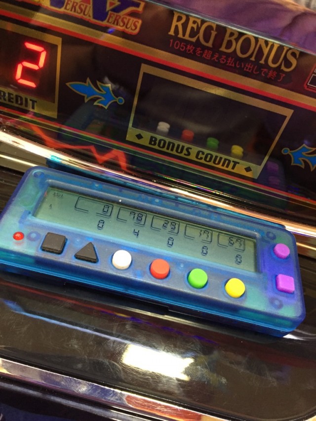 やれることはすべてやる。上級者の考えるすべてと、俺の考えるすべてにグアテマラとデカマラくらいの差があることは重々承知していますが、やれることはすべてやっておかないと年間収支が大変なことになるので、打ちながらできる最低限のことはやっておこう。ブルルンチェックのためにカニ歩きする勇気も根性もないけれど、これだけはやっておこうといったわけで、私塾長、一念発起して小役カウンターを使うことにしました。これまでエナ野郎を追い払うため、蚊取り線香的な意味合いで台の上に置くことはありましたが、電源はいつもオフ。その電源を遂にオンにしてバーサスに座ったのです。北斗修羅で深いところまで持って行かれての単発、そして二連を食らったあとに。
