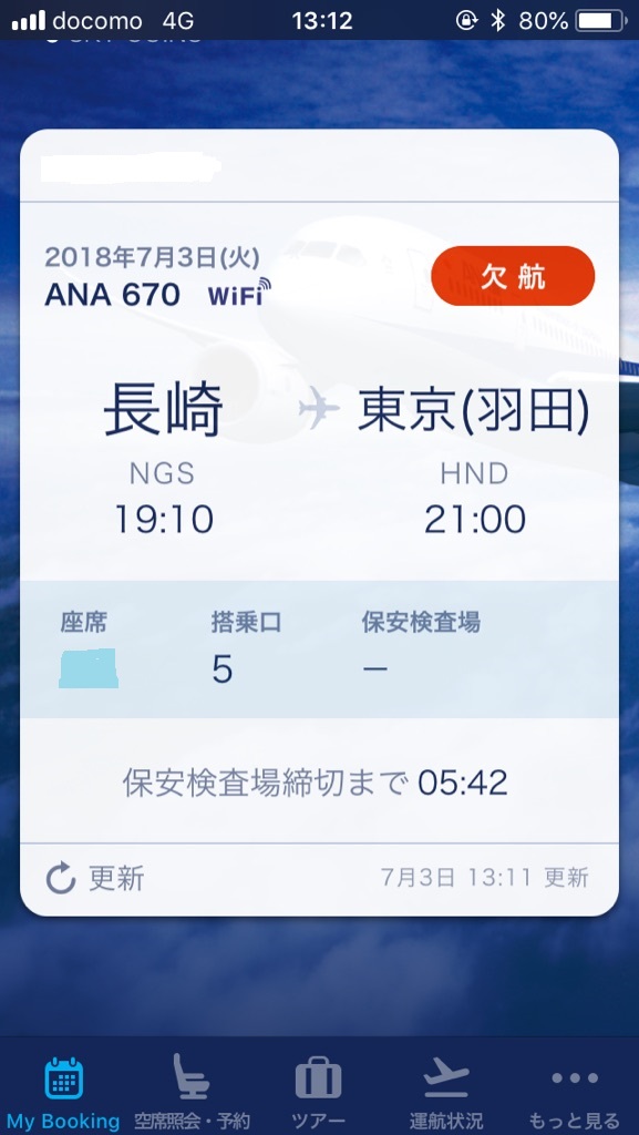 4日は長崎で仕事の予定でしたが、台風7号の接近に伴い、当日入りができなくなる可能性があるからと代理店の方に言われ、急遽、3日の最終便で長崎の佐世保に前乗りすることになりました。