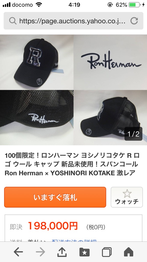 俺は絶対に転売目的で商品を購入したりはしません。スニーカーであれば履き潰す覚悟で、洋服であれば雑巾以外の用途がなくなるまで着るつもりですが、約1万円で購入したこのキャップに、ちょっとあり得ない値段が付いているのを知ってすぐさまオークションサイトに登録だけしてしまったこと。この点は素直に謝りたいと思います。すんませんでした。
