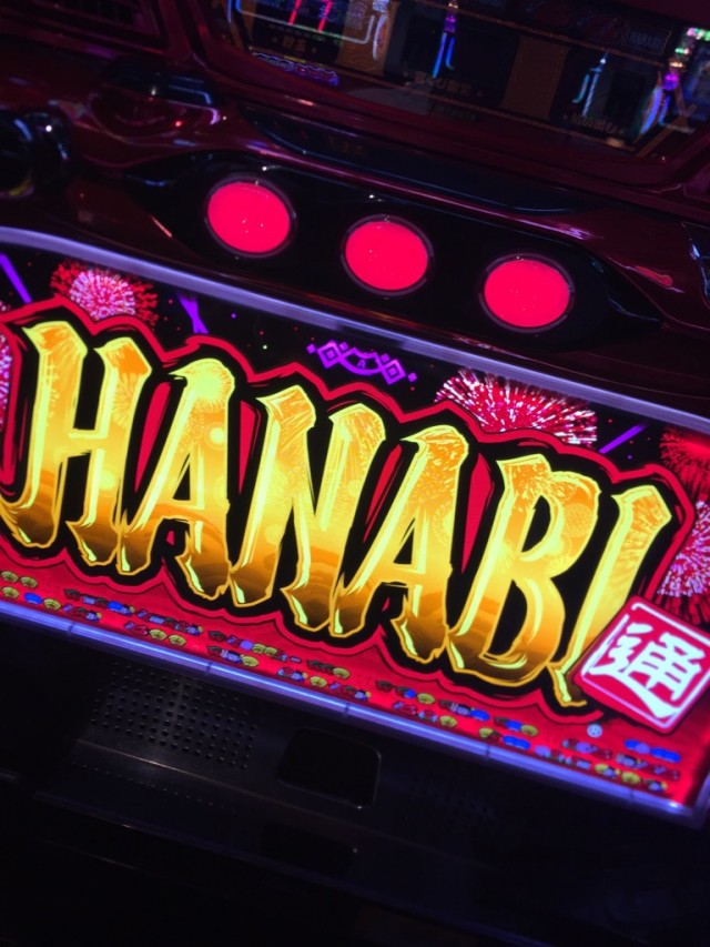 開店待ちの列と原宿アトモスの列、そして炊き出しの列に並ぶのはちょっと恥ずかしいので開店から5分遅れで入店。ハナビ通のシマに向かうとすでに半数以上の台が10Gとか15Gとかで放置されており、どっかのヤングが全台、俺が回してやるくらいの勢いでカニ歩いていたので、とりあえず、目についたバージン台を慌てて確保。周囲の台に気を配りながらの実戦開始と相成りました。