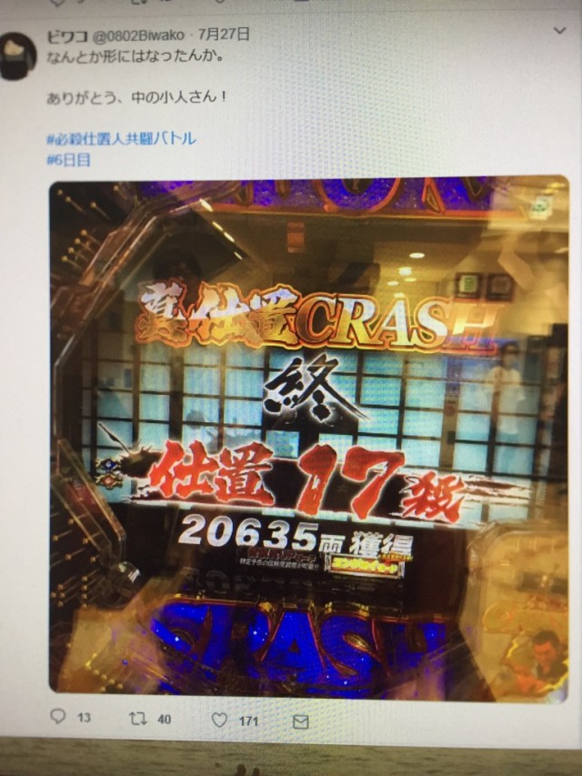 設置からほぼ毎日必殺仕置人を打っています。当らずヤメがずっと続いて、昨日、ようやくゲットした初当りは二連ポッキリ。俺を煽りに煽りまくった「問答無用のお仕置きの鉄人」と「必殺仕置人共闘バトル」は情状酌量の余地なし、仮釈放なしの無期懲役を言い渡したいところですが、恐らく京楽とぱちタウンの狙いはこれ。長くデジパチから離れていた俺を引っ張り出すことに成功したばかりか、毎日踊らせることにも成功したわけですから、今回は京楽とぱちタウンの勝ち。負けたままというのもちょっとムカつくのでこれから打ってきます……思うツボですね。
