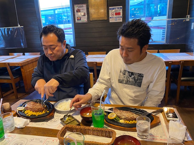 先日、中武のアニキにステーキをご馳走になりました。これまで券売機で食券を購入している写真をツイッターにアップして出し子と言ってみたり、シャカシャカのセットアップを着てタバコ吸っている姿を軍団の元締めと言ってみたり、事ある毎にアニキを、まるで犯罪者であるかのように報道してきたにもかかわらず、ステーキをご馳走してくれるアニキの懐の深さに感服すると同時に沖海よりも深く反省。運ばれてきたアツアツのジャンボステーキを前に、今後こういうことは絶対にヤメよう、良からぬ想像を膨らませるのはやめようと心に誓ったのですが、もう想像する、しないの次元でなく、私の中でアニキ=犯罪みたいなイメージが出来上がっちゃっているのだと思います。