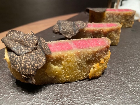 ※牛フィレカツにスライスしたクソが乗っています。