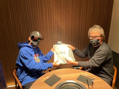 私がバイオハザードを良く打っていることを知った上でのチョイスでしょうか。招かれた先はとある有名焼肉店。ラーメンでも牛丼でも、なんなら数寄屋橋公園の炊き出しに並んでもいいのにわざわざ値の張る焼肉店を予約するあたり、かなり背伸びしたなと思う反面、嬉しくもあるのですが、サプライズはそれだけにあらず。超が付くほどのドケチで知られる少年が無料肩たたき券以外のプレゼントを私にくれたのです。