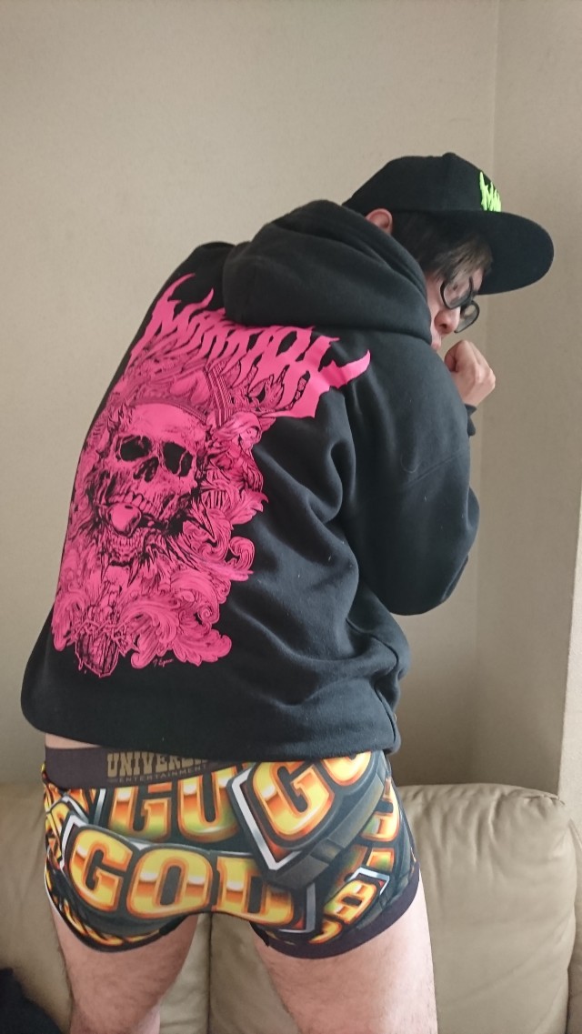 今回のサムネイルで被ってる帽子、良く着ているギャグボールをしたドクロのパーカーどこのブランドなんですか?