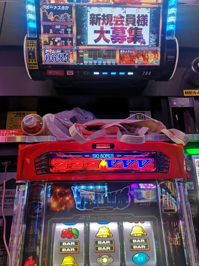 前日6000枚も出ていたバーサスで小役も良好、さらには中段V揃いはないものの偶数を示唆している。