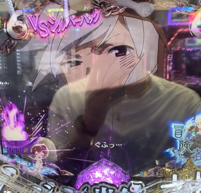 | 12 | 保留変化予告(発光)→アビリティアップ予告(青)→ 連続予告(×2・緑)→ ダンジョン連撃ステップアップ予告(ステップ3・武器赤)→ テンパイ→ リーチ後背景予告(シーン系・エイナ・デフォルト)→ バトルリーチ(VSシルバーバック・前半)→ハズレ |