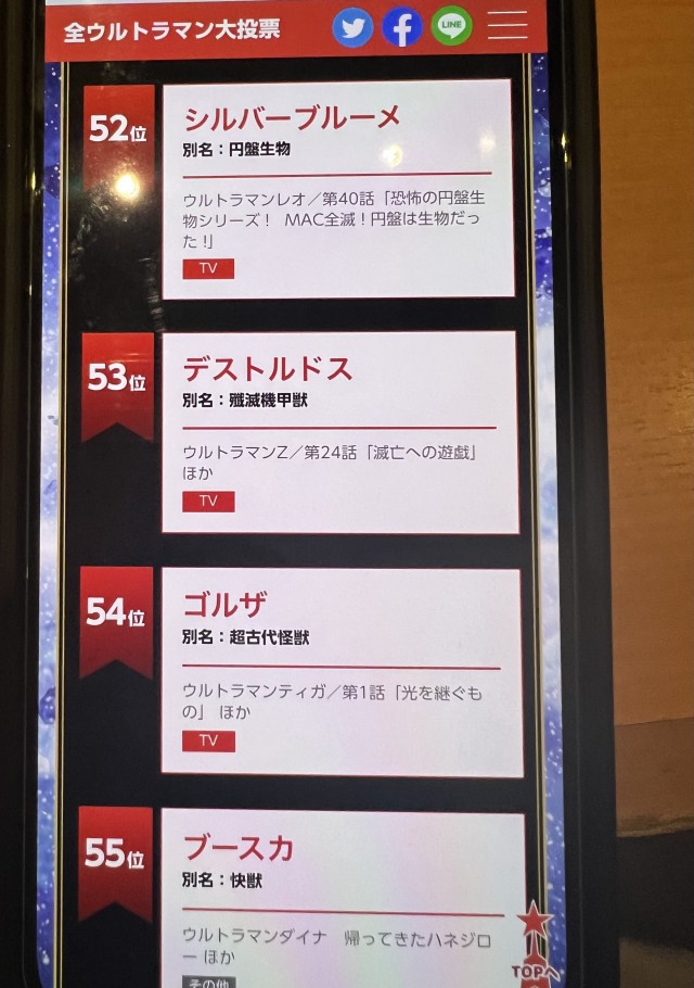 ちなみに、ゴルザはウルトラマン怪獣の人気投票54位でした。
