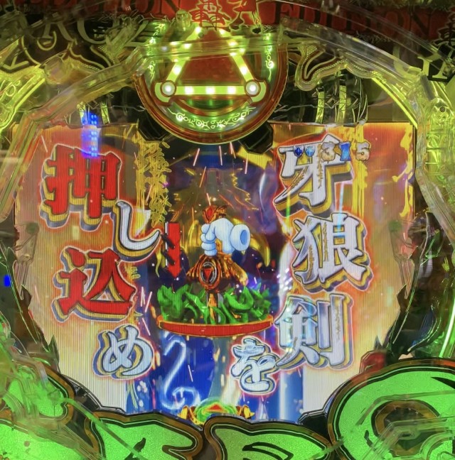 | 6 | 保留変化予告(緑)→連続予告(×2) →タイトル予告(継続→大望)→轟天メーター(×10) →轟天SP(当落牙狼剣デバイス) →大当り!(1・ラウンド中昇格せず・2R) |