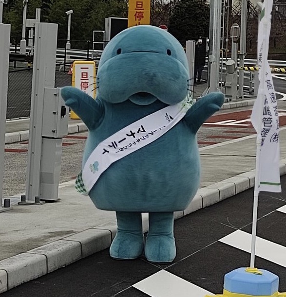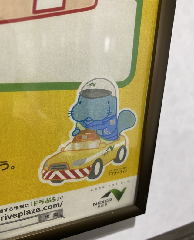 そんな実戦の帰りに、とぼとぼとサービスエリアに寄ったら、なんとマナーティくん本人に出くわしたんです。