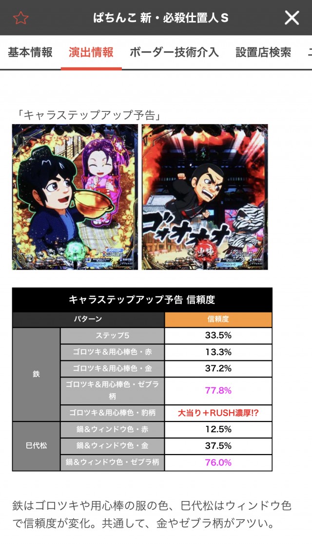 ステップアップといえば、キャラステップアップ予告(鉄)で「ゴロツキ&用心棒色・豹柄」が出ると「大当り+RUSH濃厚!?」だってよ!