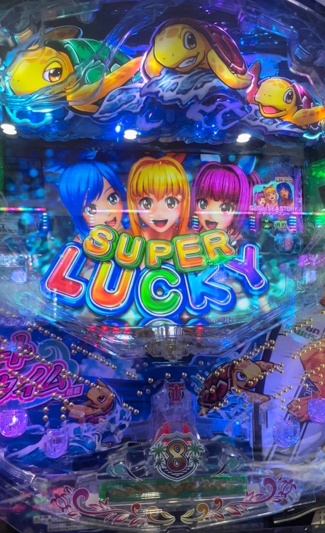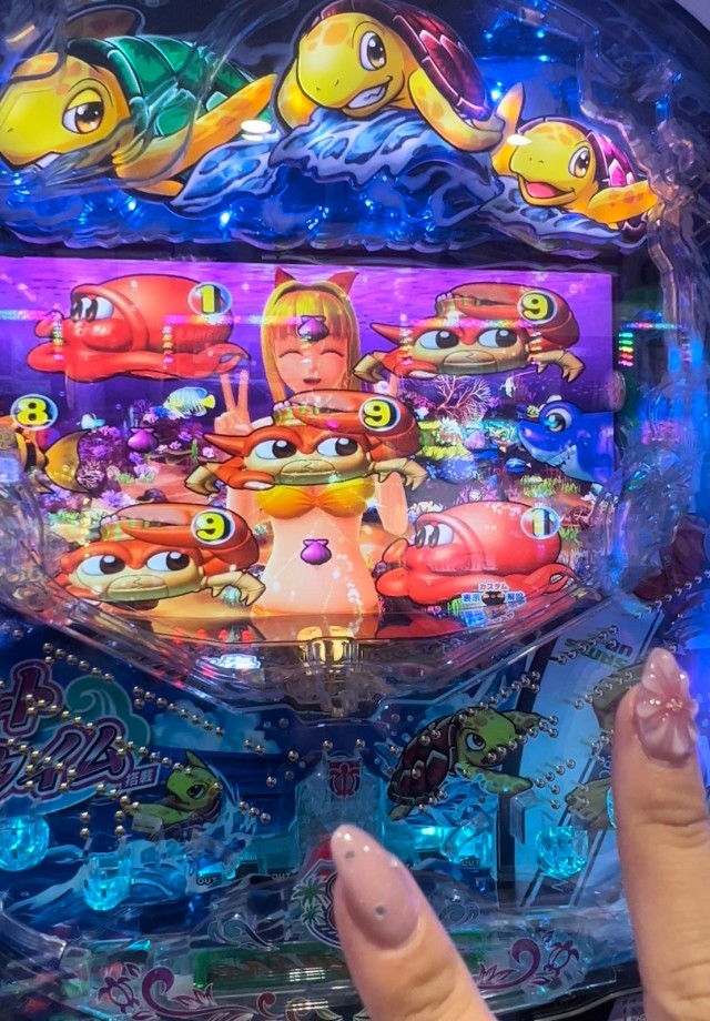 | 15 | ノーマルリーチ→魚群予告→リーチ後カメ予告→ 7揃い→大当り(10R確変)! |