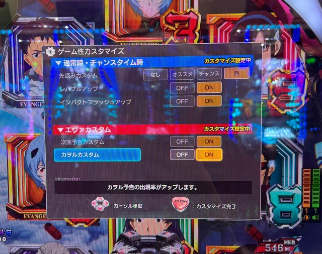 ※通常時先読みカスタム熱・レバブルアップON・インパクトフラッシュON・次回予告カスタムON・カヲルカスタムON・ノーマルモードで実戦