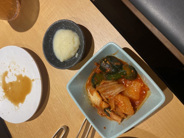 キムチ盛りとニンニクすりおろしを追加で注文。