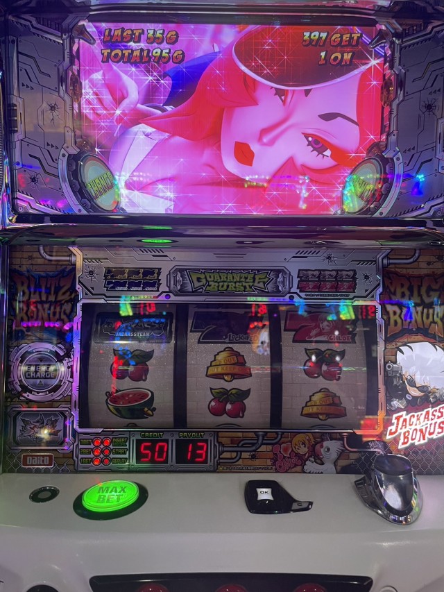 パチスロの傷はパチスロで癒す! ゲーセンで少し昔の台を打ったりして心の傷を回復していましたが、こんな調子なので財布とメンタルが少々削られております(´;ω;`)