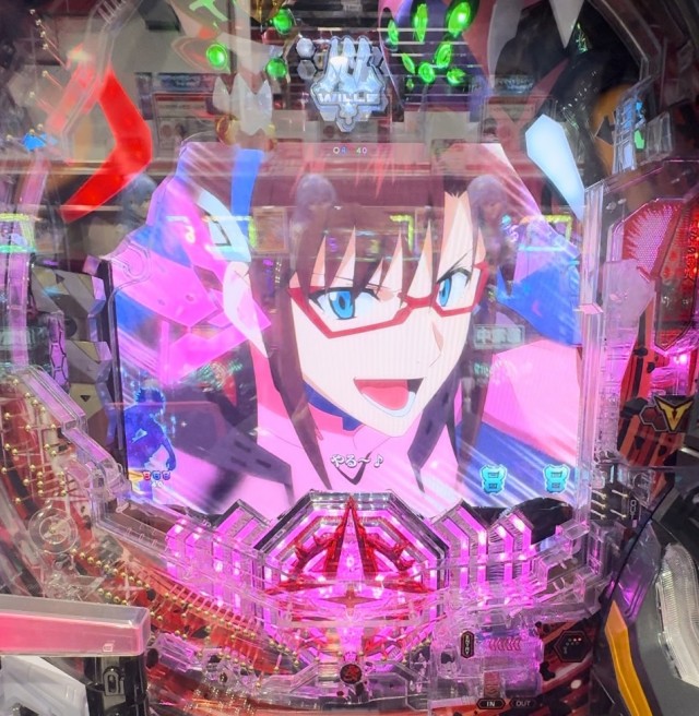 今日の台は好感触、ではあったものの残念ながら当たらず…。9回転目のエヴァ系CGリーチは「新2号機α」に発展。アスカのピンチに駆けつけてくれたマリさん。よく見ると髪色が染めたての私に似ているな(笑)。こんなメガネの似合う女性になりたいわぁ~。