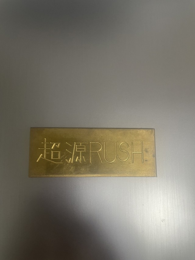僕が工業高校生のころ、卒業間際に制作したネームプレート(?)です。当時、初代の『超韋駄天』が流行っていて、卒業後に打ちにいきたいなーと思って軽い気持ちで作りました! プログラムを作って機械に読み込ませて作ったのですが、「S」の文字を作るのに苦労した思い出が今蘇った…。