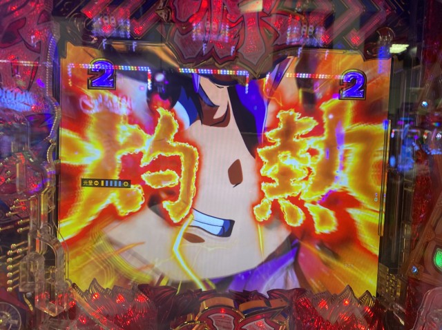 3回転でもらいました、灼熱。もちろん大当りゲット。からの超源RUSHも獲得! アツすぎる。