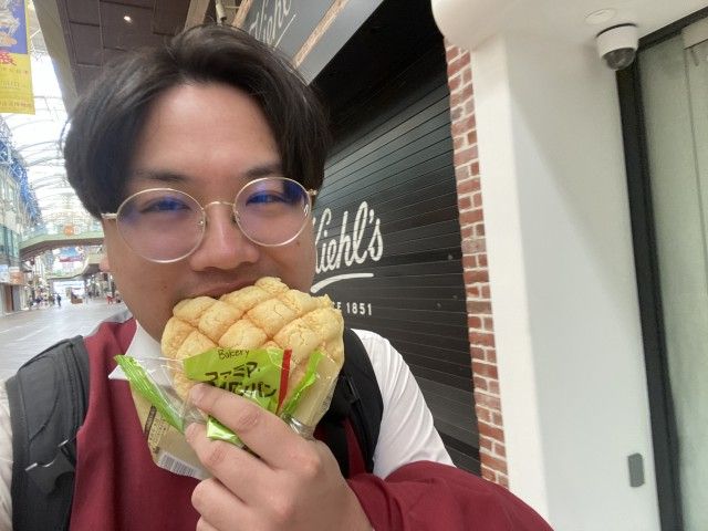 最近撮った使えそうな写真を漁ってたら、メロンパン食べながら歩いてるマヌケな写真しかなかった…。どういう感情でこの写真を撮ったのか全く覚えていません。