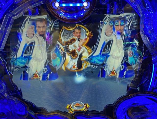 | 22 | 3Dトライアングル予告(赤)→ 変動開始エンブレム完成(Chance)→擬似2→ ステチェン(赤字)→ふりもの予告(金)→擬似3→ ふりもの予告(金)→タイトル予告(白背景牙狼→魔獣)→ ふりもの予告(金)→リーチ→白孔登場予告(赤)→ 鎧召喚(鋼牙)→牙狼SPリーチ(VSアスモディ)→ 青タイトル→GARO’S EYE(緑)→当落ボタン無し→ハズレ |