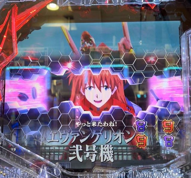 | 9 | 保留変化予告(青保留)→SU予告(シリアス・SU2)→ 使徒襲来ランプ予告(青)→シンクロリーチ(シンジ)→ 警報発展→弐号機リーチ(モニターCI白・ 最終カットイン通常)→ハズレ |