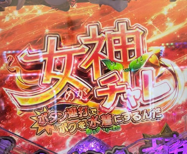 | 1 | 水着セリフ予告(赤)→テンパイ→発展→ 女神チャレ(タイトル赤)→ハズレ |
