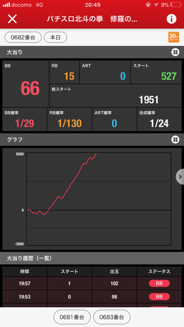 帰ってからマルハンさんのアプリで私が打ってた台のその後のデータを見てみたの。↓