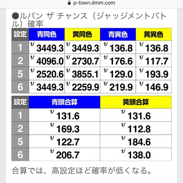 CZ(ルパンザチャンス)の確率をDMMぱちタウンの解析ページで見ると、こちら↓