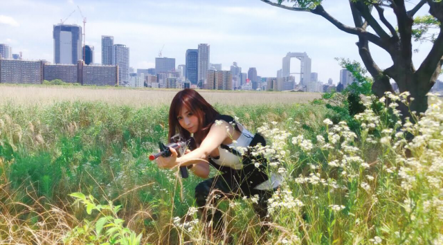 この都会の暑さの中で、チクチクした草むらに入り、 電動ガンをかまえる私( ̄∀ ̄)