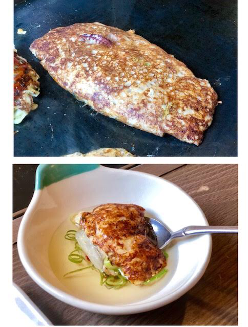 明石焼きみたいに、ダシ汁とネギ、もしくはネギ醤油で食べるんだって。