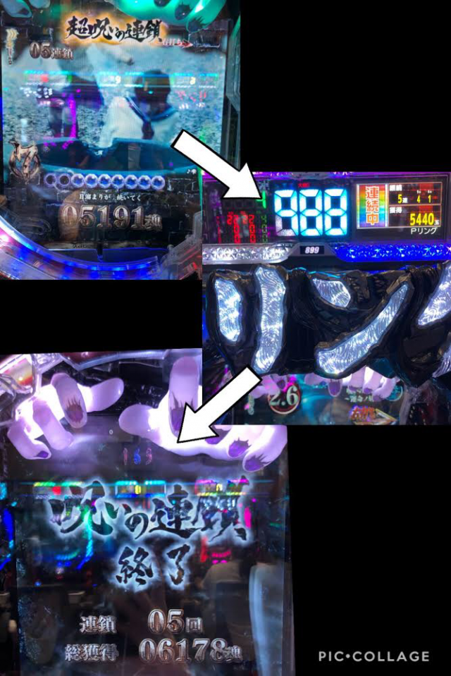 そして、7図柄で大当りだったので呪いの連鎖へ突入!