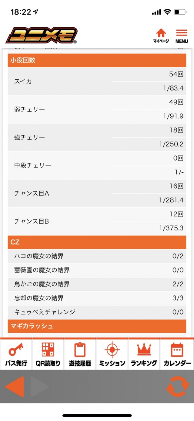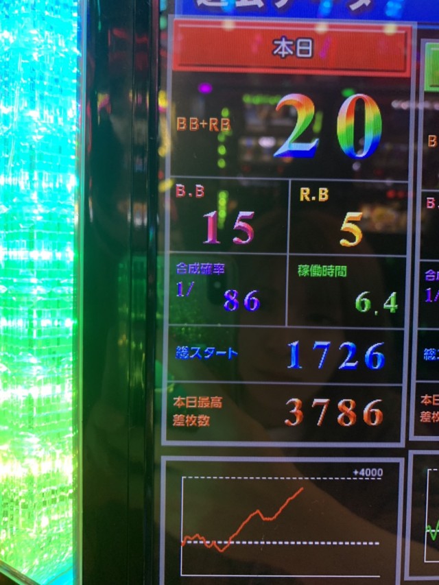 今回の立ち回りのポイント(という程のポイントではないですが)は、【打っていた台が内容は悪くないけど奇数っぽい挙動】、そして【まどマギ2全体の雰囲気が良くなかった】という状況から設定6はないだろうと思い、深追いせず勝ち逃げしたという点です。