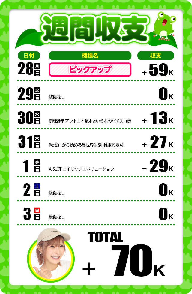 さて、早速今週の稼働と収支を書いていきますね。