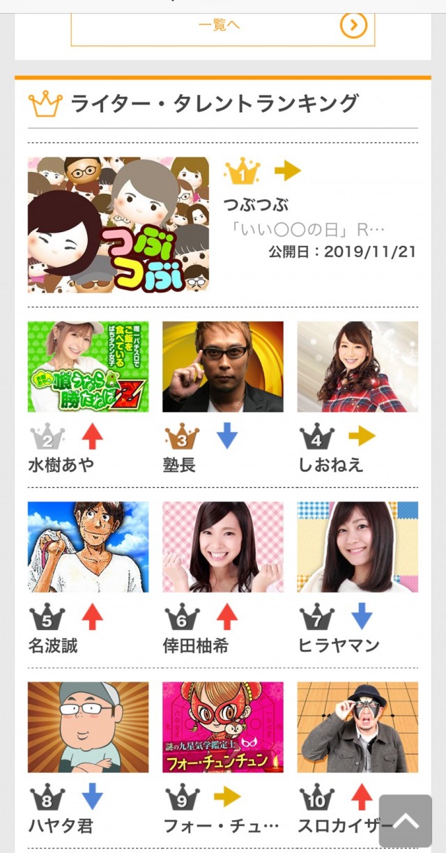 ライター・タレントランキング