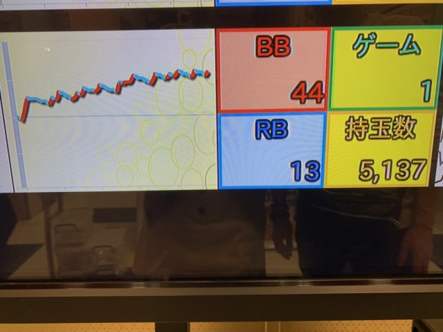 前日に設定が入ってなさそうな台に狙いを定め、並びの甲斐もあって無事に確保できたので実戦開始です。