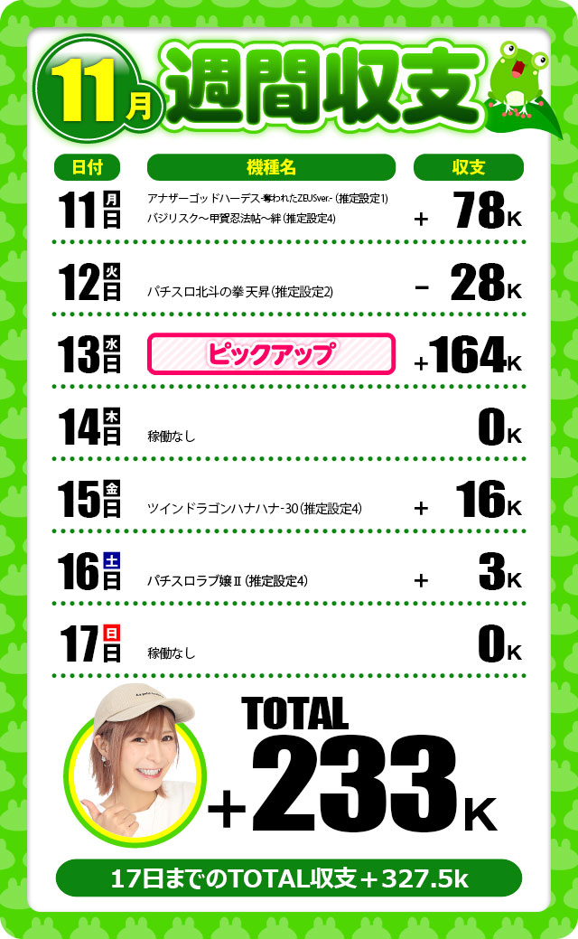 この中で今回のピックアップは13日の稼働を書いていきたいと思います。