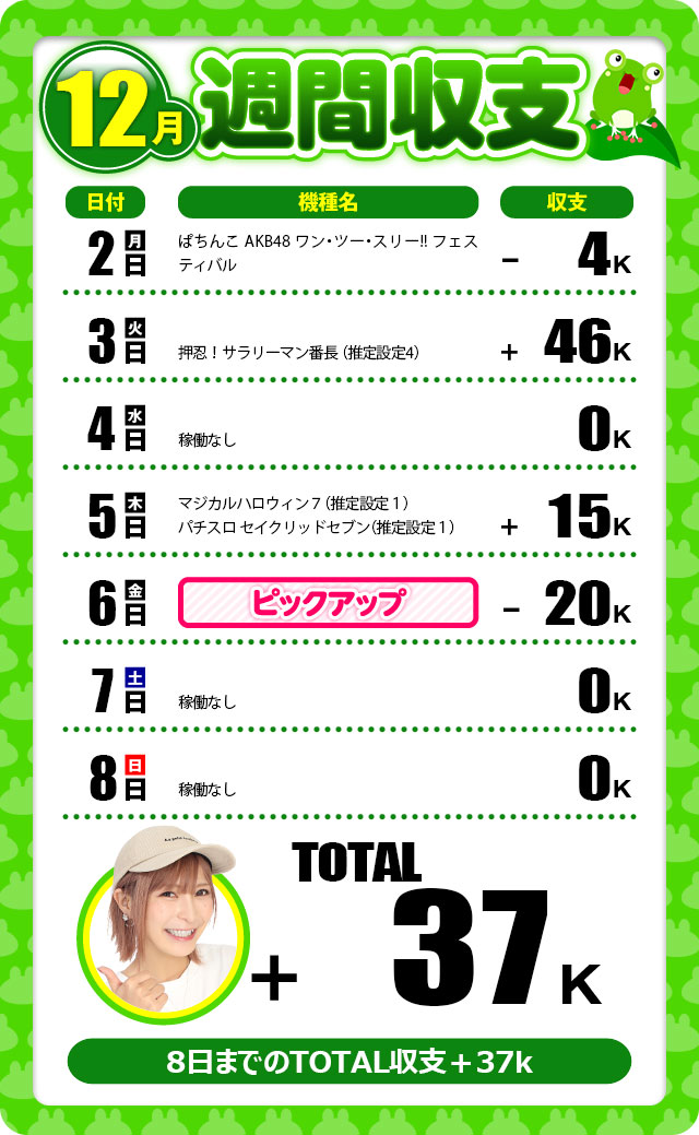 今回はどれもパッとしない稼働となっておりますが、6日の稼働をピックアップしたいと思います。