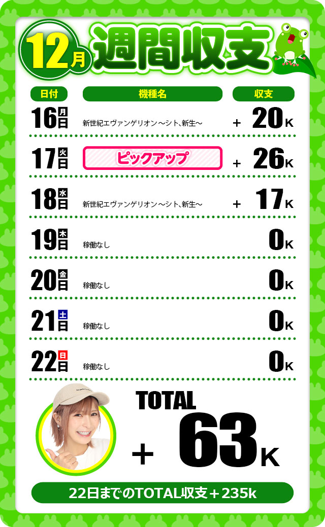 今週は全然稼働していない上に、ほぼパチンコを打っていました。