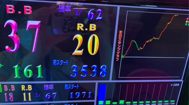経験上ですが並びで入れるホールは、ダミーとして単独で高設定を入れてあることも結構あります。その辺をしっかり意識して見れたことが、勝利へと繋がりました。